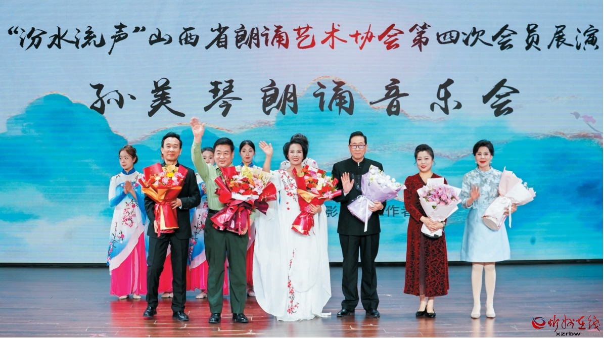 汾水流聲,詩歌與音樂的交融。12月20日晚,山西省朗誦藝術協(xié)會第四次會員展演——孫美琴朗誦音樂會在太原舉辦。 清新淡雅的舞美設計和渾厚的背景音樂下,演出在山西省朗誦藝術協(xié)會全體助演嘉賓與孫美琴共同演繹的詩人舒婷的名篇《祖國啊,我親愛的祖國》中震撼開場。接著,孫美琴以其獨有的質(zhì)感嗓音,分別呈現(xiàn)了詩人食指、何其芳的《相信未來》和《預言》,帶領觀眾穿越時空隧道,感受不同詩歌所蘊含的豐富情感和深邃魅力。
