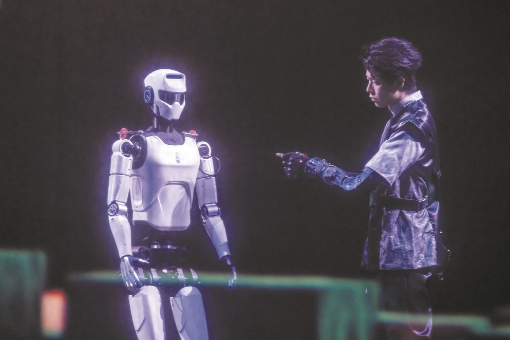 這是發(fā)生在中國(guó)大戲院長(zhǎng)三角城市戲劇節(jié)中的最“科幻”一幕,國(guó)內(nèi)領(lǐng)先的機(jī)器人走出實(shí)驗(yàn)室和展廳,以接地氣、親和的方式來(lái)到普通人身邊。面對(duì)這樣的場(chǎng)景,人們不再那么陌生——2025春晚上,張藝謀導(dǎo)演的《秧BOT》讓人形機(jī)器人略顯滑稽地扭起秧歌;上半年,半程馬拉松也迎來(lái)人形機(jī)器人“跌跌撞撞”的身影?!拔覀?cè)谔剿饕环N可能性,試著模擬發(fā)生在未來(lái)的場(chǎng)景。”《巨物之城》藝術(shù)總監(jiān)、上海戲劇學(xué)院藝術(shù)科技與管理學(xué)院副院長(zhǎng)沈倩對(duì)記者說(shuō),“無(wú)論對(duì)于機(jī)器人還是演藝產(chǎn)業(yè)來(lái)說(shuō),都具有破圈的意義?!闭\(chéng)然,機(jī)器人仍在亦步亦趨地努力跟上人類的節(jié)奏,但其不斷前進(jìn)的腳步已經(jīng)令人激動(dòng)。面對(duì)“人機(jī)共生”的時(shí)代命題,上海邁出了全國(guó)舞臺(tái)實(shí)踐的第一步。