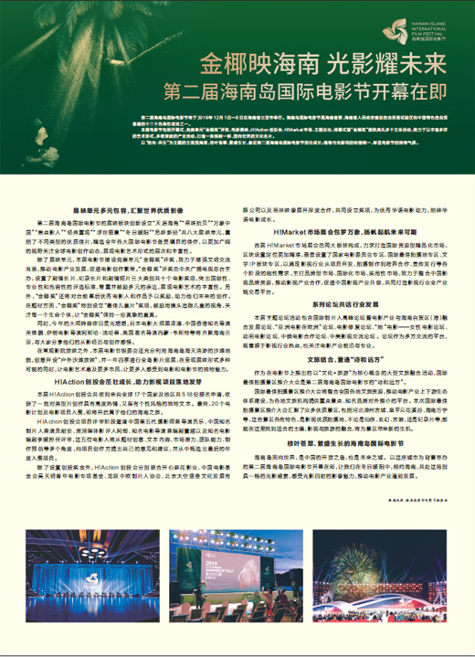 第二屆海南島國際電影節(jié)將于2019年12月1日—8日在海南省三亞市舉行。海南島國際電影節(jié)是海南省委、海南省人民政府建設(shè)自由貿(mào)易試驗區(qū)和中國特色自由貿(mào)易港的十二個先導性項目之一。