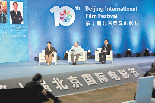 日本導(dǎo)演巖井俊二的臉出現(xiàn)在大屏幕上,臺上嘉賓則戴著同傳耳機(jī)聽他分享觀點(diǎn)。這有趣的一幕發(fā)生在8月24日舉行的中外電影合作論壇上。往年,北影節(jié)會請來多位國外電影人與中國同行一起暢聊行業(yè)熱點(diǎn)話題,今年這些國外大咖不便來到北京,現(xiàn)場連線成為一種新的討論形式。圍繞“如何在電影工業(yè)化進(jìn)程中加強(qiáng)國際間的務(wù)實(shí)合作”這一話題,中外電影人展開了一場“隔空”對話。
