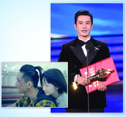 黃曉明發(fā)表獲獎感言。新華社發(fā) 《少年的你》劇照。 制圖:馮曉瑜