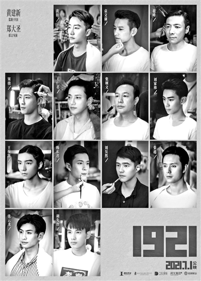 10月19日,由黃建新監(jiān)制兼導(dǎo)演,鄭大圣聯(lián)合導(dǎo)演的電影《1921》宣布將于2021年7月1日全國公映,并首次曝光了主演陣容——由黃軒、袁文康、祖峰、竇驍、王仁君、張頌文、劉家祎、王俊凱、韓東君、劉昊然等飾演中共一大代表。據(jù)悉,1921年,一大參會代表的平均年齡只有28歲,正是一群青春朝氣的熱血青年。為了更貼近真實人物,演員除了要年齡符合,更要“形神兼?zhèn)洹薄|S建新導(dǎo)演透露,為了選出樣貌和靜態(tài)上最像角色的演員,籌備時在辦公室兩面墻上貼滿了照片。