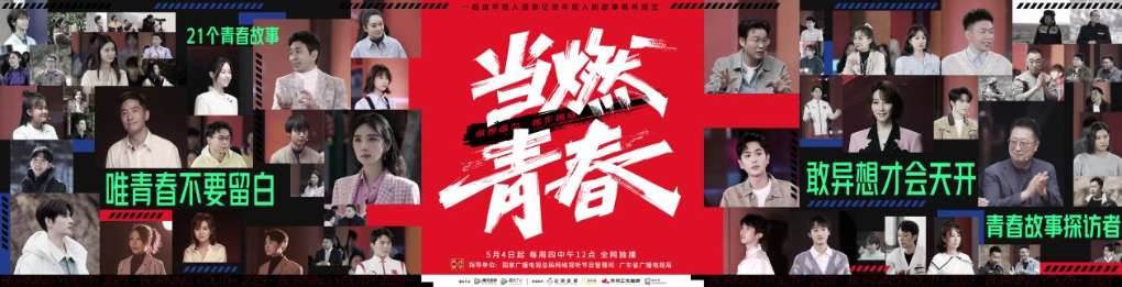 由國(guó)家廣播電視總局網(wǎng)絡(luò)視聽(tīng)節(jié)目管理司等指導(dǎo)的網(wǎng)絡(luò)綜藝《當(dāng)燃青春》將于5月4日開(kāi)播。節(jié)目以青春視角進(jìn)行故事講述,展現(xiàn)當(dāng)代青年敢想敢為、善作善成的奮進(jìn)風(fēng)采。