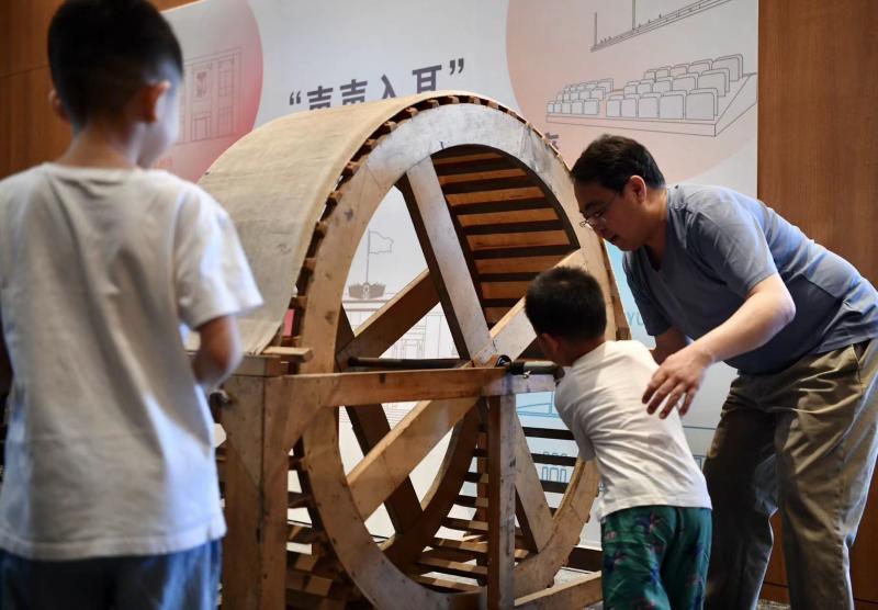 雖不是明星藝術(shù)家參與的互動活動,但現(xiàn)場卻坐得滿坑滿谷,一臺巨大的風(fēng)車成為切入點。剛工作時,鄭晨曾經(jīng)“自以為是”地為這臺大家伙起了一個稍顯學(xué)術(shù)的名字,但前輩一句話卻化繁為簡:這就是“風(fēng)車”,作用就是營造風(fēng)聲。通過搖動手柄,依靠帆布摩擦,逼真的風(fēng)聲回蕩耳畔。而現(xiàn)場幾位小朋友也被請上臺,體驗“造風(fēng)”的樂趣。不過這個工作其實是個體力活兒,鄭晨說自己曾經(jīng)因為在一個戲中的強度有點大,甚至因為胸口疼而一閃念“自己究竟是要告別人藝還是告別人世。”