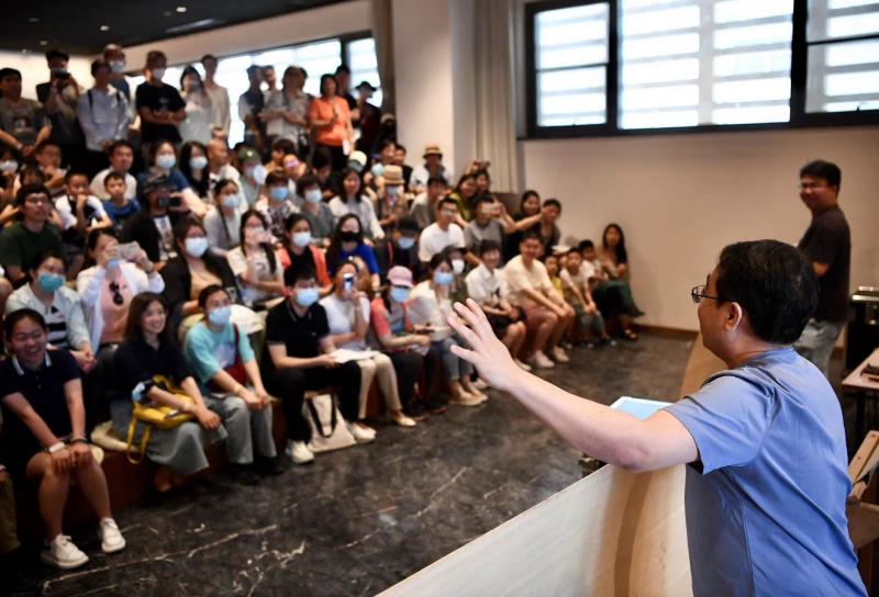 一樣樣示范后,鄭晨還和觀眾分享了一個自己的經(jīng)歷,“2005年復(fù)排《嘩變》,接到任務(wù)后我們正好赴美國演出《茶館》,于是我便帶上了《嘩變》的劇本想得空時熟悉下。那個戲其實給音效的空間并不大,只有汽笛聲、海鷗聲和軍歌。那次美國演出我們?nèi)チ伺f金山,巧合的是,在金門大橋下剛好是美國海軍基地太平洋艦隊司令部的舊址,正是《嘩變》劇本里劇情的發(fā)生地。于是我就在那里錄了當(dāng)時的環(huán)境音,海鷗以及海浪的聲音,聽著汽笛聲,感覺瞬時就穿越了?!爆F(xiàn)場,他為觀眾播放了自己當(dāng)時錄下的海鷗聲,而這個故事,鄭晨想傳遞給觀眾的是,音效作為話劇的一部分,每一部作品都希望聲音能與戲合拍,從中也能看到戲劇從業(yè)者的用心。