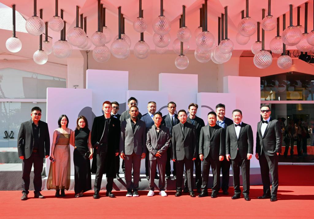 9月6日,在意大利威尼斯,電影《雪豹》主創(chuàng)人員亮相首映式紅毯。新華社記者 金馬夢(mèng)妮 攝