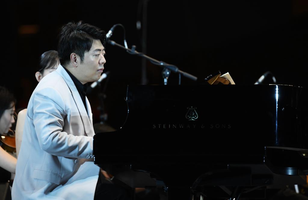 9月10日晚,鋼琴家郎朗與西安交響樂團(tuán)在西安大雁塔北廣場戶外公演。新華社記者 李一博 攝