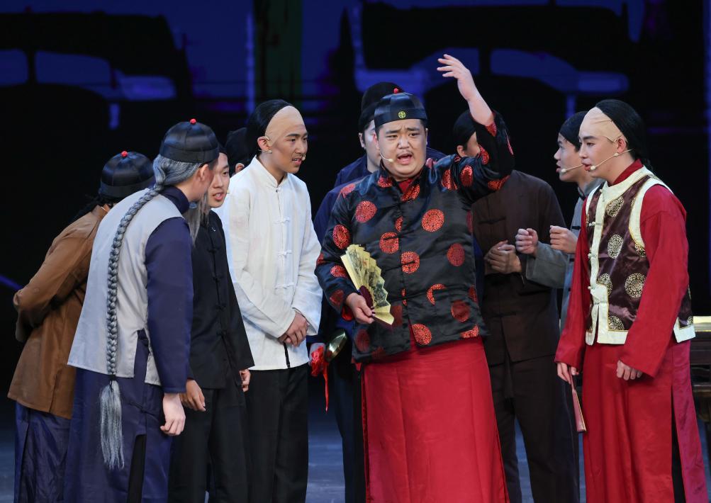當(dāng)日,中國(guó)人民大學(xué)附屬中學(xué)分校戲劇實(shí)踐課程開展成果展示,高中學(xué)生們?cè)诒本﹪?guó)安劇院演出大型四幕話劇《吶喊》,生動(dòng)演繹了魯迅筆下阿Q、孔乙己、祥林嫂等眾多經(jīng)典形象。