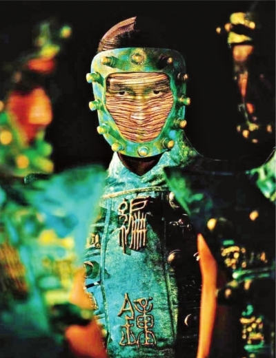 楊麗萍介紹,《荊楚映象》以“荊楚”為題,展現(xiàn)中華民族文化和中國人文精神的豐富性與多樣性,表達(dá)浪漫主義精神。此次在舞臺(tái)上將直觀地呈現(xiàn)那些華麗的想象——頂天立地的青銅巨門、高達(dá)6.5米的巨型編鐘、精美的玉覆面、靈動(dòng)的車馬人物出行圖。屈原《九歌》世界中的巍巍眾神,還有后羿是怎樣射日的、山鬼是怎樣騎豹的、鳳凰是怎樣浴火重生的……也將在舞臺(tái)上以大家難以想象的方式一一呈現(xiàn)。