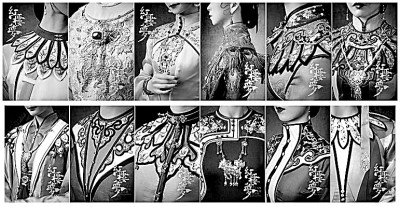 民族舞劇《紅樓夢》中十二金釵人物服裝上的云肩設計圖樣 資料圖片