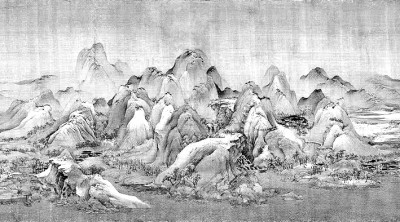 這種“物象借取”特別體現(xiàn)在對傳統(tǒng)繪畫、傳統(tǒng)詩歌、傳統(tǒng)器物等的創(chuàng)造性轉化和創(chuàng)新性發(fā)展上。如舞蹈詩劇《只此青綠》中“青綠”一角的服裝設計便是對北宋畫家王希孟所繪《千里江山圖》進行研究、梳理、提煉之后的外化表達:服裝的底色取自《千里江山圖》中山峰的設色,為渲染后的頭青與石綠色。裙型設計將襦纏繞至腰間,形成層疊感以營造山巒層疊之勢,長袖疊搭在一起時則猶如山巒起伏。在“入畫”一幕中,“青綠”舞者們隨著王希孟不斷揮舞畫筆,以舞入畫,這些色彩自畫中來又回到畫中去,使觀眾沉浸在天人合一的意境之中。