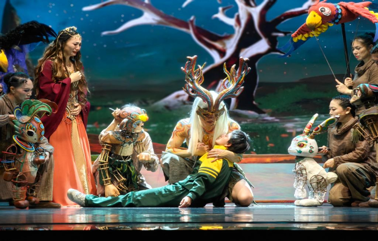 天津市兒童藝術劇團團長宋永順介紹,《敦煌·九色鹿王》是用XR數(shù)字科技替代傳統(tǒng)舞臺實景的戲劇,也是推動中華優(yōu)秀傳統(tǒng)文化創(chuàng)造性轉化創(chuàng)新性發(fā)展的藝術實踐。該劇秉承讓文物說話、讓歷史說話的創(chuàng)作理念,希望通過戲劇、木偶、音樂、歌舞、數(shù)字技術、AI人工智能等多元化技術和藝術手段,幫助廣大少年兒童更好認識和認同中華文明。