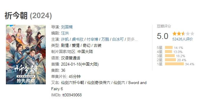有意思的是,數(shù)量上來了,有些仙俠劇的質(zhì)量卻沒跟上。截至目前,相較于早前“仙劍一”與“仙劍三”的高評(píng)分,《千古玦塵》在豆瓣只拿到了5.5分,《祈今朝》是5分,“仙劍四”只有4.3分。