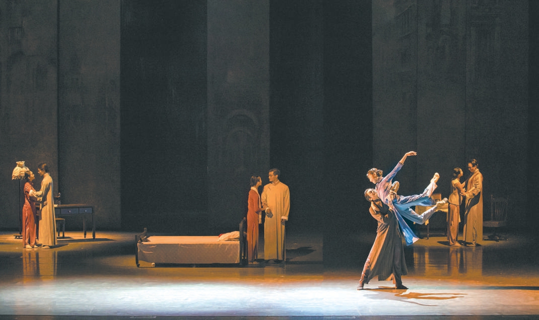 《永不消逝的電波》是韓真、周莉亞這對“舞壇雙子星”較早“出圈”的舞劇,在觀眾心中留下了很多經典舞段。十余位身穿旗袍、手持蒲扇的女舞者,在《漁光曲》的旋律中曼妙起舞,浸透老上海風情;與之產生強烈對比的是,披著黑色斗篷的特務在冷雨夜展開驚心動魄的追捕;李俠與蘭芬從假扮夫妻到發(fā)展為真正的愛人,幾對舞者的雙人舞同臺綻放。這些片段時常在舞蹈愛好者腦海中盤旋。