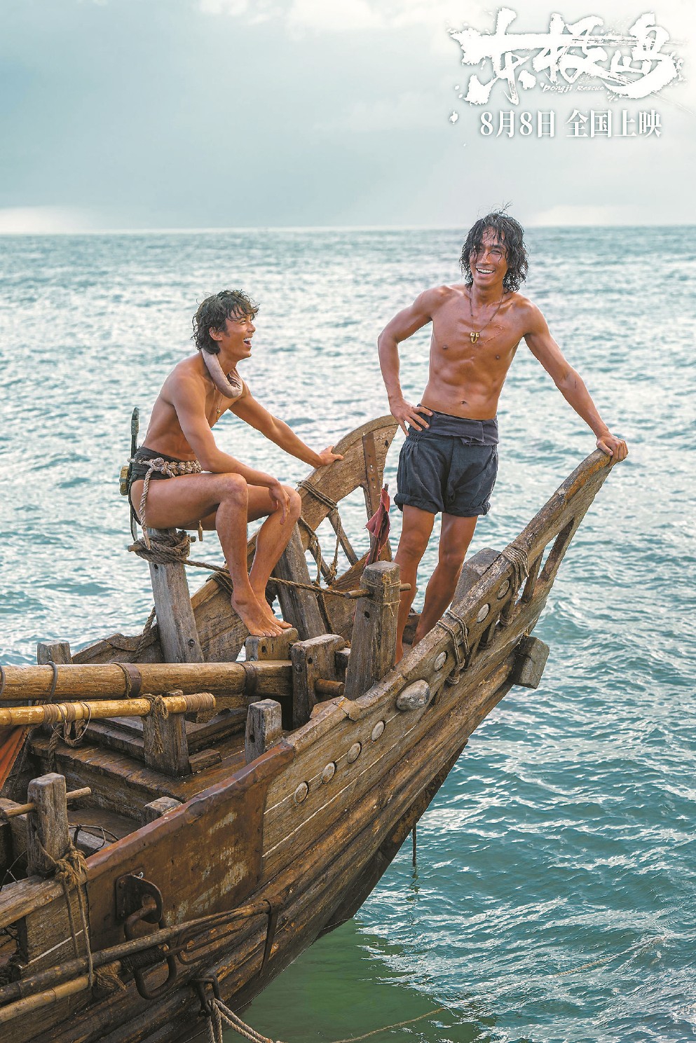 在僅有263人的封閉小島上,健康性感,彪悍狂放的阿赑與阿蕩顯得如此格格不入。為此,影片巧妙地——或許也略顯無奈地,將兩人設(shè)定為吳老大從海上“撿來”的孤兒,既規(guī)避了交代人物成長背景的繁瑣,又通過兩人可能是“海盜后代”的身份,來合理化解釋兄弟倆超乎常人的水性、驚人的戰(zhàn)斗力。女主角阿花則是吳老大從人販子手上解救的養(yǎng)女,也可歸入“無根浮萍”型人物。當(dāng)三位主要角色都因缺乏家庭背景和成長經(jīng)歷,而與當(dāng)?shù)貪O民群體形成了顯著區(qū)隔,這種處理方式暴露出商業(yè)類型片在改編真實歷史事件時常見的困境:拘泥于史實容易顯得平淡呆板,放飛想象力則會破壞題材的嚴(yán)肅性。