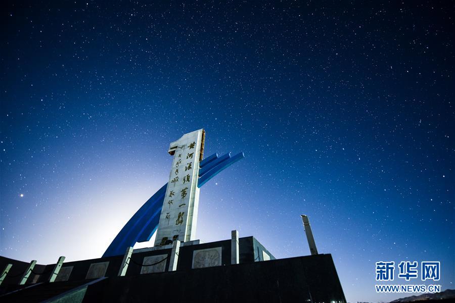 青海玉樹藏族自治州曲麻萊縣黃河源頭第一縣紀(jì)念碑(6月15日攝)。新華社記者吳剛攝