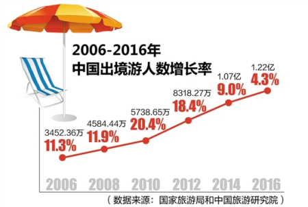 2017年春節(jié)假期,615萬國人到世界各地歡度新春佳節(jié),創(chuàng)出了出境游歷史新高,引來世界矚目。實際上,早在2011年,中國已成為世界第一大客源國,2014年出境游人次首次破億,2016年更是達到了1.22億人次。這一數(shù)字相當(dāng)于我國人口數(shù)量前七位的重慶、上海、北京、成都、天津、廣州、保定的總和,也接近目前日本的總?cè)丝跀?shù)。