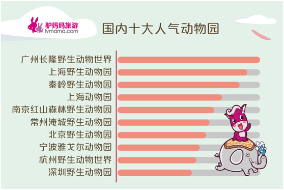 除此之外,驢媽媽根據(jù)去年一年其平臺上的訂單數(shù),統(tǒng)計(jì)出了國內(nèi)動物園類景區(qū)人氣榜,廣州長隆野生動物世界依然最受游客追捧,而上海野生動物園、秦嶺野生動物園、上海動物園、南京紅山森林動物園、常州淹城野生動物園、北京野生動物園、寧波雅戈?duì)杽游飯@、杭州野生動物世界、深圳野生動物園也位列十大人氣動物園榜單之列。