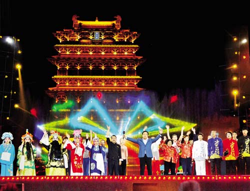 作為主場的運城市,用絳州鼓樂這一傳承千年的世界級非物質(zhì)文化遺產(chǎn)開場,電視連續(xù)劇《三國演義》關(guān)公扮演者陸樹銘威嚴(yán)亮相,以關(guān)公形象表達(dá)運城歷史傳統(tǒng)文化。