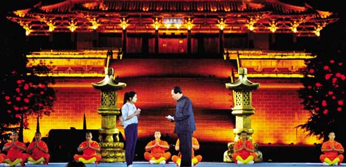 作為客場競演城市,我市節(jié)目精心策劃,抓住了城市的靈魂,以“心靈之舟”為主題思想,多角度展示了我市的文化旅游特色。在第一階段展示中,高清影視資料向觀眾推介了五臺山、雁門關(guān)等大美山河,吊足了觀眾的味口。4名原生態(tài)歌手和20名小朋友齊唱《美麗忻州心靈之舟》,營造出寧靜的開場氛圍。緊接著,毛澤東特型演員張瑞奇的出現(xiàn),將全場帶入第一個高潮,毛澤東與五臺山的歷史淵源點燃紅色激情,我市既展示出了名山秀水的妖嬈,又漂亮地打出了紅色旅游這張牌。宣講“忻州,我們的心靈之舟”這一主題的同時,更是將凈化心靈、激蕩心靈、洗滌心靈、愉悅心靈、陶冶心靈這5大內(nèi)容融入到節(jié)目中,完整地傳達(dá)“我們的忻州,是蕩滌人們心靈的忻州,是放飛人們夢想的忻州”這一主題思想。第一階段競演結(jié)束,鳳凰網(wǎng)點評嘉賓將支持票投給了忻州,因為忻州是個令她動心的地方。就連著名表演藝術(shù)家馬德華先生也被忻州的名山秀水所感染,他激情點評:“忻州令人魂牽夢繞。”圖為市委常委、常務(wù)副市長趙志堅傾情講述,撼動全場第二階段的展演,圍繞“產(chǎn)業(yè)轉(zhuǎn)型升級和旅游脫貧致富”,我市以建設(shè)蘆芽山為故事背景,蘆芽山掌門常洪睿講述了他致力打造智慧化旅游景區(qū)的故事。