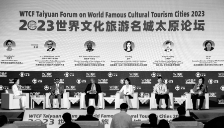 太原論壇設(shè)置“市長談世界文旅名城建設(shè)”主旨發(fā)言、《旅游城市文化品牌建設(shè)與形象傳播報告》發(fā)布、“文明交流互鑒與世界文旅名城建設(shè)”特別論壇、“文化品牌建設(shè)與文旅產(chǎn)業(yè)發(fā)展”主題發(fā)言、旅游交易洽談會等活動。來自國內(nèi)外的文旅大咖圍繞文旅產(chǎn)業(yè)發(fā)展進(jìn)行探討,為提高城市旅游經(jīng)濟,打造城市形象,建設(shè)各美其美、美美與共的旅游城市發(fā)表真知灼見?,F(xiàn)場,太原市委副書記、市長張新偉與部分嘉賓圍繞“市長談國際文旅名城建設(shè)”和“文明交流互鑒與世界文旅名城建設(shè)”主題發(fā)言。