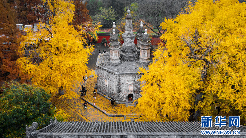 廣德寺內(nèi)的銀杏樹(shù)距今已有1500多年歷史,被人們稱為“將軍樹(shù)”。如今樹(shù)葉變黃,“將軍”猶如身披“金甲”。輕風(fēng)拂過(guò),銀杏樹(shù)葉隨風(fēng)飄落,鋪滿整個(gè)寺院,仿佛金黃的地毯,成為這個(gè)季節(jié)最美的風(fēng)景,吸引了眾多游客前來(lái)拍照打卡。(吳肖、劉夢(mèng)靈)