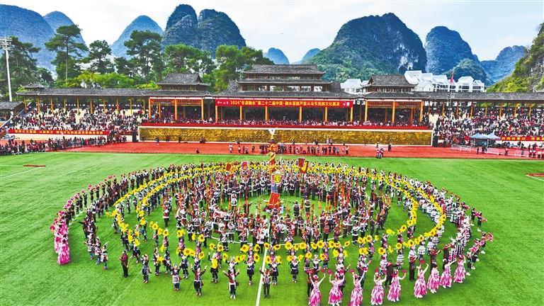 11月23日,廣西柳州市融水苗族自治縣民族體育公園,群眾身著盛裝參加民族文化展演活動(dòng),吸引了八方游客。黎寒池?cái)z(中經(jīng)視覺(jué))