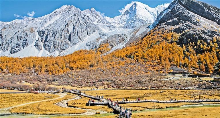 10月31日,游客在四川省甘孜藏族自治州的稻城亞丁景區(qū)游覽。新華社記者 儲(chǔ)加音攝