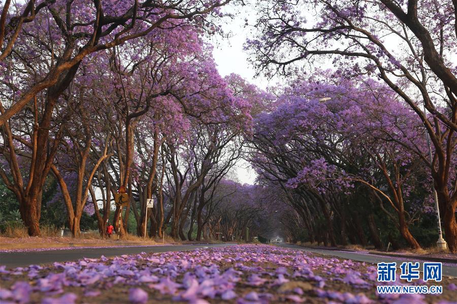 在津巴布韋首都哈拉雷,隨處盛開(kāi)的藍(lán)花楹成為靚麗的風(fēng)景(10月2日攝)。 近日,位于非洲南部的津巴布韋進(jìn)入春季,全國(guó)各地的藍(lán)花楹紛紛盛開(kāi)。津巴布韋風(fēng)光秀麗,擁有維多利亞瀑布、大津巴布韋遺址等5處世界自然或文化遺產(chǎn)。首都哈拉雷有多處神奇的平衡石景觀,同時(shí)也因出色的園藝被稱為非洲“花城”。新華社發(fā)(陳雅琴攝)