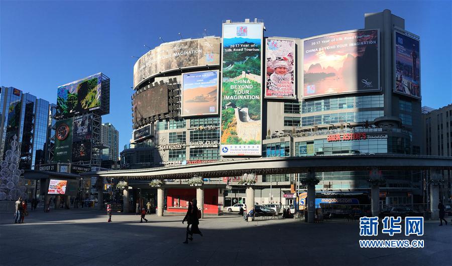 這是1月1日在加拿大多倫多市中心的鄧達斯廣場拍攝的“美麗中國——2017絲綢之路旅游年”主題宣傳廣告牌。從2016年12月26日起,由中國國家旅游局推出、以“美麗中國——2017絲綢之路旅游年”為主題的大型旅游宣傳廣告在加拿大多倫多市中心鄧達斯廣場亮相,向人們展示中國美麗而豐富的旅游資源。整個活動將持續(xù)5周。新華社發(fā)(鄒崢攝)