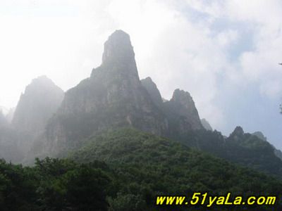 五老峰史稱(chēng)東華山,歷史上為北方道教名山,海拔1809.3米,奇峰險(xiǎn)峻,需攀鏈而上,屬丹霞地貌。這里是層層峰巒,森林古木,各種生物覆蓋著整個(gè)山野?;t草綠,山光水色,風(fēng)光旖旎非凡,故有“北有五臺(tái)觀庫(kù)存宇,南在五老看風(fēng)光”之說(shuō)。游人往縣城西南遠(yuǎn)眺,見(jiàn)有東錦屏峰、西錦屏峰、太乙坪峰、棋盤(pán)山峰四山峰仙態(tài)神姿,隱現(xiàn)于云煙蒼茫之中,將高1809.3米的玉柱峰環(huán)抱其中,“有偃蹇傴樓之伏”,猶如五位老人抱拳作揖迎貴賓之勢(shì),故名五老峰。