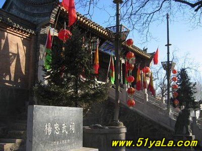 山西省代縣境內(nèi)有個(gè)名叫鹿蹄澗的村子,村中有座建于元代的楊忠武祠,人們通常稱它為楊令公祠或楊家祠堂。祠堂里保存著一些關(guān)于楊家將的比較真實(shí)的資料,可補(bǔ)史書的不足;也有許多生動(dòng)的塑像和畫像,可供游人憑吊和觀覽。
