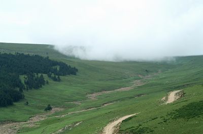 荷葉坪因其山體像荷葉而得名。位居寧武、五寨、岢嵐三縣交界處,在管涔山上與蘆芽山、馬倫草原成三足鼎立的態(tài)勢。最高處海拔2784米,比蘆芽山主峰還高。為晉西北最高峰,電視差轉(zhuǎn)臺4844就建在主峰。整個山體屬花崗巖結(jié)構(gòu),但寬廣的頂部覆蓋著厚厚的土層,經(jīng)過多年的雨雪滋養(yǎng),特別適合林木和牧草及中藥材生長。每到夏日,綠草如茵,鮮花盛開,空氣清新。這時周邊三縣的村民就將牛馬趕上坪臺,做好記號,不再管了,深秋時再去找回。