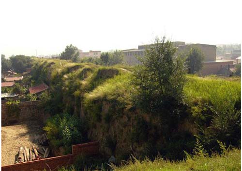 在五寨縣有兩個(gè)武王村,有杏嶺子鄉(xiāng)前武王城村和東秀莊鄉(xiāng)后武王城村,兩村相連處,有武王城遺址。遺址四面環(huán)山,平面呈長方形,城墻依山而建,東西長約2500米,南北寬約1500米,周長約8000米。城內(nèi)分為南北兩部分,城墻殘高0.5—7米,沿城墻四周共建有六個(gè)甕城,西面甕城保存完好。甕城平面呈半圓形。