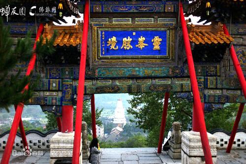 沿一百零八級石階登高,按照佛家的說法,就把人間的一百零八種煩惱踩在腳下了。置身牌樓下,手撫門柱,回身四望,遠處的山,山上的云,近處的清水河,雄壯多姿的寺廟建筑群,都收入眼中,深感“靈峰勝境”四個字點得妙。這里,是很好的登高覽勝的觀景點。一九四八年春,黨中央機關(guān)從延安開赴河北省西柏坡,途中路過五臺山,陳毅同志作詩道:“本不游五臺,迂道時日緊,至今有余歡,曾踏菩薩頂。”