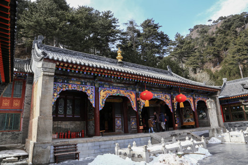 現(xiàn)僅存有四座大殿,分別是天王殿、大雄寶殿、觀音殿和關(guān)公殿,其中觀音殿又稱文殊殿,殿內(nèi)供奉有五尊菩薩,兩側(cè)是十八羅漢。寺后有一座小院,院內(nèi)有乾隆五十一年建造的十五世章嘉活佛墓塔。墓塔八面雕有精細(xì)的人物圖案。章嘉活佛是黃教中一個(gè)歷代沿襲的職位,其地位僅次于達(dá)賴、班禪活佛??滴趸实圩鹫录位罘馂椤按髧?guó)師”,讓其統(tǒng)管內(nèi)蒙五十旗。第十九世章嘉活佛、即末世活佛被袁世凱委任為北京、西寧、五臺(tái)山黃教的首領(lǐng),后來(lái)還擔(dān)任了國(guó)大代表。這個(gè)末世活佛在五臺(tái)山擁有極大權(quán)力,因鎮(zhèn)海寺是他的行署,所以鎮(zhèn)海寺的規(guī)模也日漸龐大。