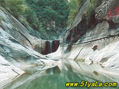 五指峽中的黑龍?zhí)端浅G宄?,終年流淌不息,在這個(gè)還有一個(gè)很有趣的說法,據(jù)說每到大旱的時(shí)刻人們就到這幾來求雨,但是求雨的人一定要是屬龍和蛇的,因?yàn)槭刈o(hù)著黑龍?zhí)兜氖且粭l黑龍。清澈的山澗為來到這里的人們帶來了快樂。游人可以泛舟水上,進(jìn)行皮筏漂流。
