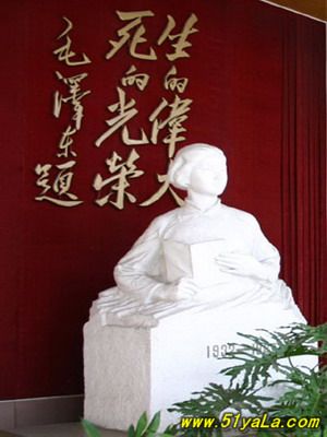 劉胡蘭(1930-1947),中國共產(chǎn)黨黨員,1946年參加革命,1947年山西軍閥閻錫山的軍隊(duì)突然襲擊時(shí)被捕,英勇不屈,在敵人鍘刀下壯烈犧牲。毛澤東曾在當(dāng)時(shí)《晉綏日報(bào)》上為之題詞:“生的偉大,死的光榮?!?/p>