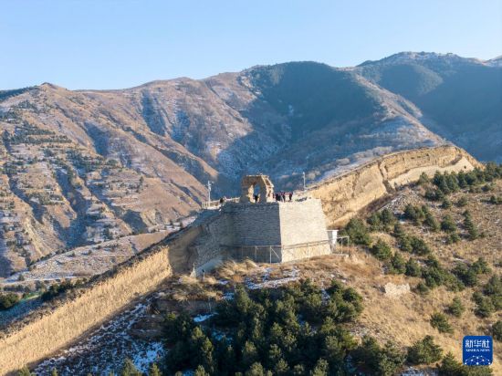 游客參觀位于朔州市山陰縣的廣武長(zhǎng)城(無人機(jī)照片,1月6日攝)。