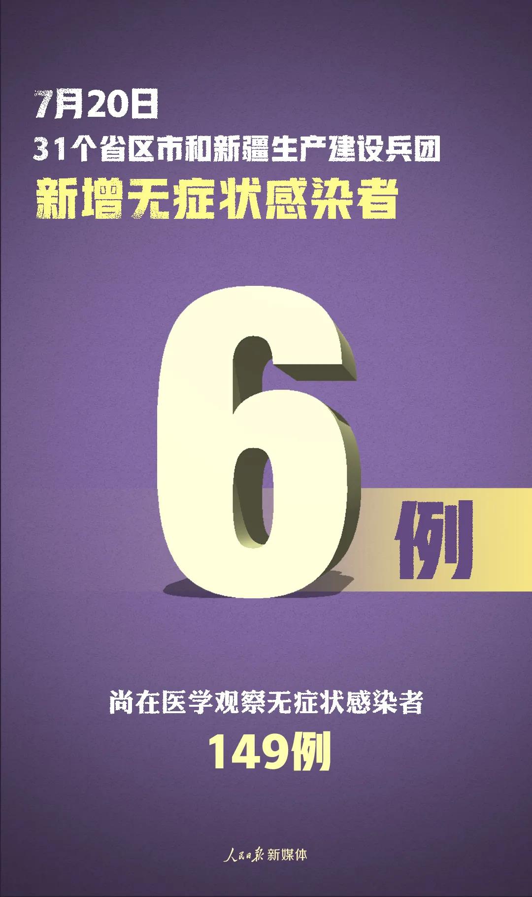 31個?。ㄗ灾螀^(qū)、直轄市)和新疆生產(chǎn)建設兵團報告新增無癥狀感染者6例(境外輸入1例);當日轉(zhuǎn)為確診病例1例(境外輸入1例);當日解除醫(yī)學觀察10例(境外輸入7例);尚在醫(yī)學觀察無癥狀感染者149例(境外輸入80例)。