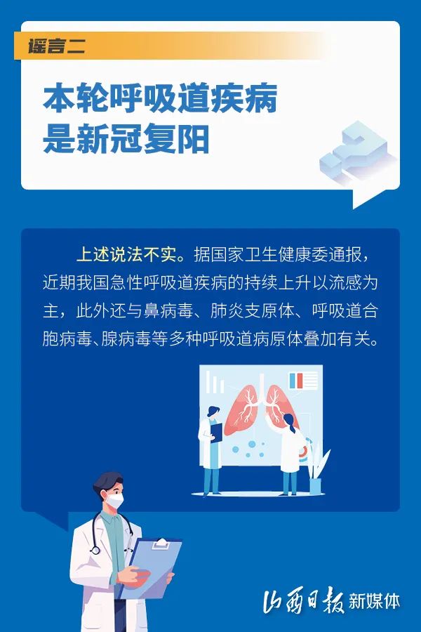近期,呼吸道疾病呈現(xiàn)高發(fā)態(tài)勢。個別不實信息趁機傳播擴散,誤導(dǎo)公眾認知。特此澄清關(guān)于呼吸道疾病的5個謠言,幫助大家知曉呼吸道疾病的基本常識,做好健康監(jiān)測及預(yù)防措施。閱讀、收藏、轉(zhuǎn)發(fā)吧!