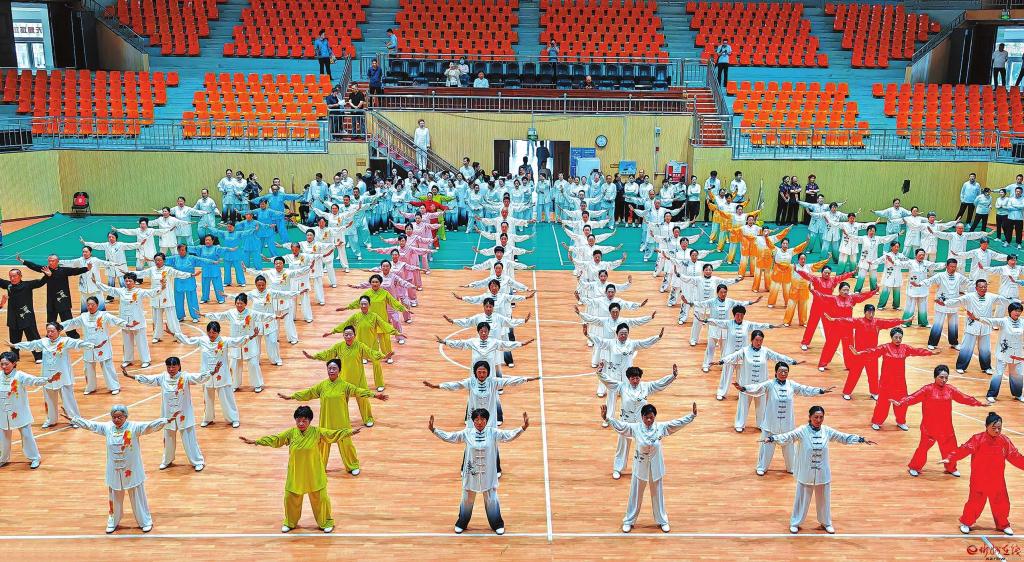 來自市直單位及各縣(市、區(qū))健身站點(diǎn)的23支代表隊(duì)240多名運(yùn)動員、教練員及裁判員參加了此次比賽。運(yùn)動員精神抖擻,伴隨著悠揚(yáng)動聽的音樂節(jié)奏,展演了健身氣功八段錦,一招一式、如潮涌動,蔚為壯觀;各站點(diǎn)隊(duì)員動作剛?cè)嵯酀?jì)、整齊有序,盡顯多年習(xí)練的功底。