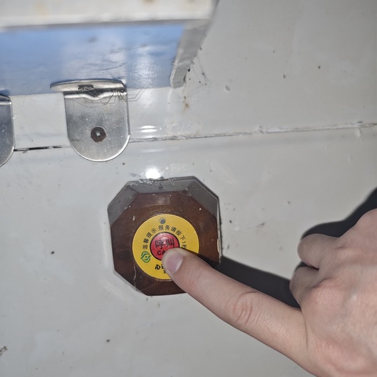 按鈕的正中央寫著醒目的“呼叫”二字,旁邊還有一圈提示文字“服務(wù)請按下1秒”。記者按照指引按下按鈕,只見紅燈閃爍了一下,待到松開手后,亮光便消失了。記者反復(fù)測試多次,除了閃爍又熄滅的紅燈,沒有任何撥號接通及報警的聲音。等候多時,也沒見工作人員前來查看。