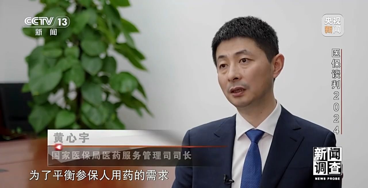 國(guó)家醫(yī)保局醫(yī)藥服務(wù)管理司司長(zhǎng) 黃心宇:當(dāng)時(shí)的核心是為了平衡參保人用藥的需求,醫(yī)保基金的承受能力以及企業(yè)創(chuàng)新的合理回報(bào)這三方面的利益。