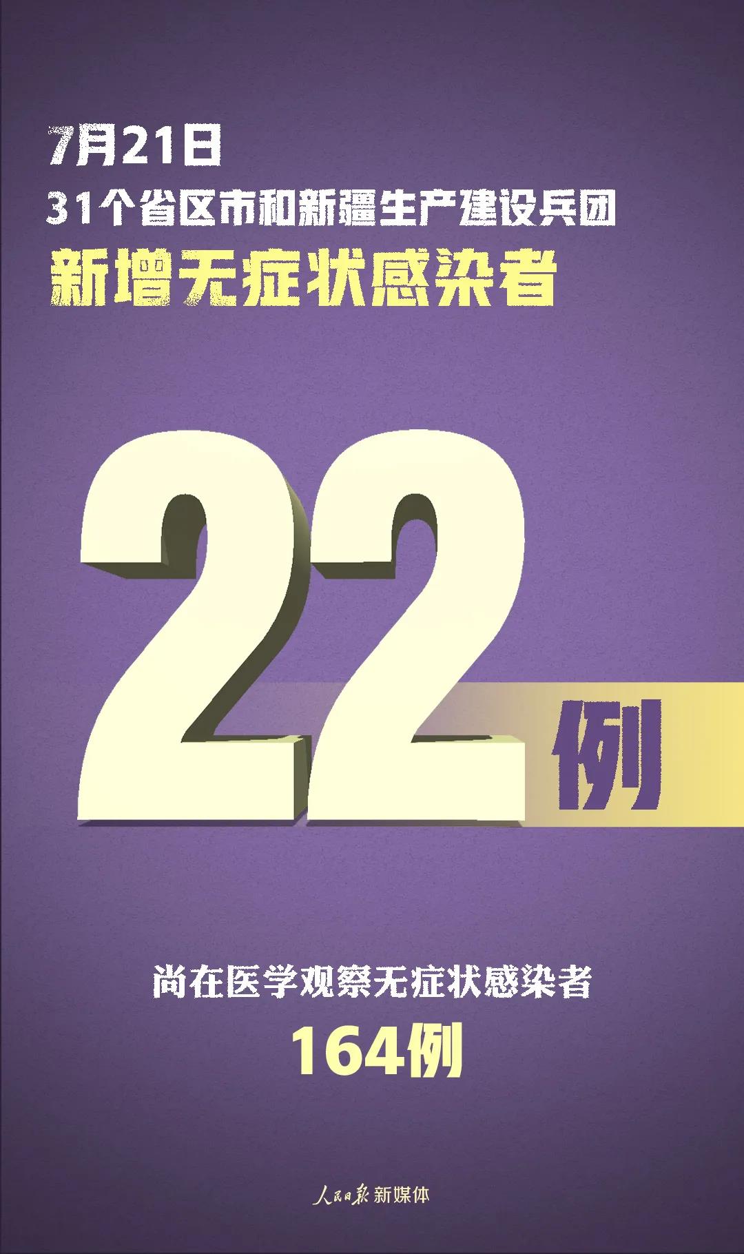 31個?。ㄗ灾螀^(qū)、直轄市)和新疆生產(chǎn)建設(shè)兵團報告新增無癥狀感染者22例(境外輸入8例);當日無轉(zhuǎn)為確診病例;當日解除醫(yī)學觀察7例(境外輸入4例);尚在醫(yī)學觀察無癥狀感染者164例(境外輸入84例)。