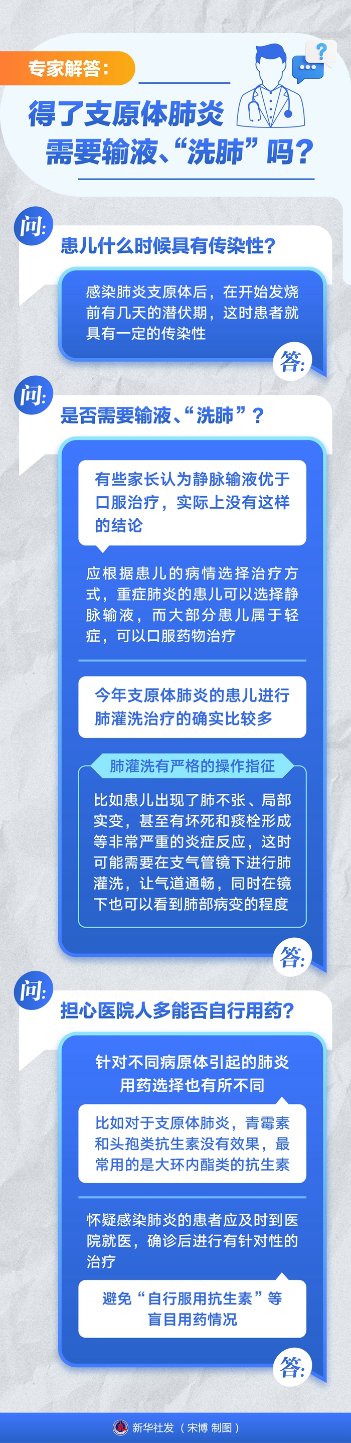 新華社北京11月12日電(記者林苗苗、俠克)近期,兒童支原體肺炎廣受關(guān)注?;純菏裁磿r(shí)候具有傳染性?是否需要輸液、“洗肺”?擔(dān)心醫(yī)院人多能否自行用藥?記者在11月12日世界肺炎日到來(lái)之際,采訪了相關(guān)醫(yī)學(xué)專家。