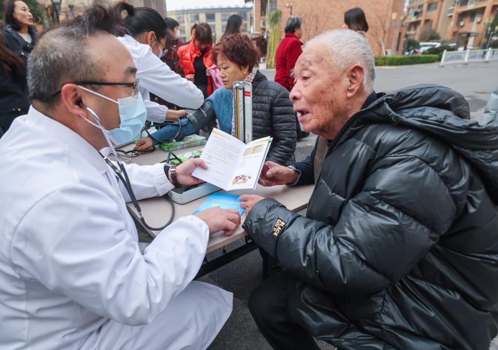 2023年12月13日,在浙江省湖州市吳興區(qū)道場鄉(xiāng)浮玉社區(qū)內(nèi),藥店藥劑師給居民普及安全用藥知識(shí)。新華社記者徐昱 攝