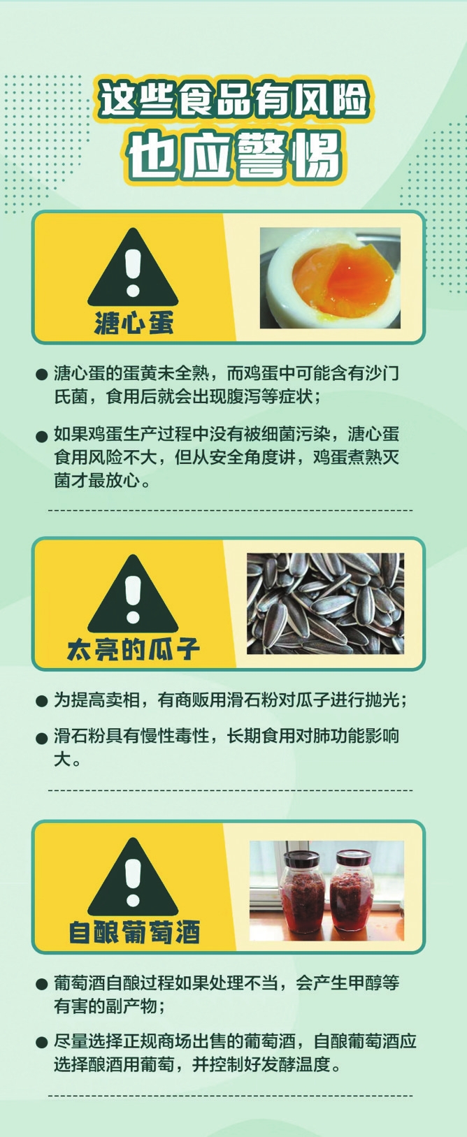 不買不新鮮的濕粉類食品,尤其是購(gòu)買散裝銷售的濕粉類產(chǎn)品,要注意包裝上的生產(chǎn)日期、保質(zhì)期、儲(chǔ)存條件等信息,低溫儲(chǔ)存,并在當(dāng)天吃完。