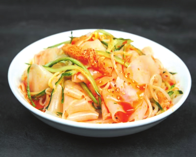 剛進(jìn)入伏天,氣溫飆升到近40℃。一天中午時(shí)分,大壯老爸從工地下班,帶回來(lái)一大張從街角買的涼皮,將涼皮切成手指粗細(xì),加入麻醬、香醋、辣椒油,就著大蒜,父子倆哐哐炫了好幾碗。