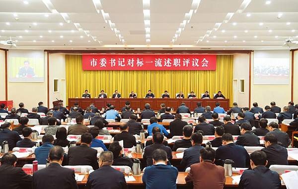 圖為市委書記對標(biāo)一流述職評議會(huì)會(huì)場。 本報(bào)記者 李聯(lián)軍攝